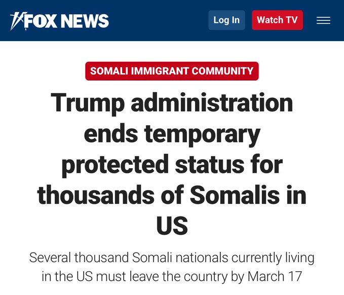 U.S. Immigration and Customs Enforcement @ICEgov · 6h TPS for Somalis has ended. Leave the U.S. on your own terms between NOW and March 17th... Or receive a visit from ICE. The choice is yours.