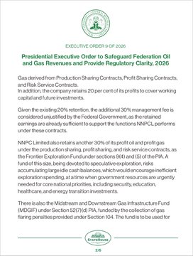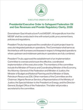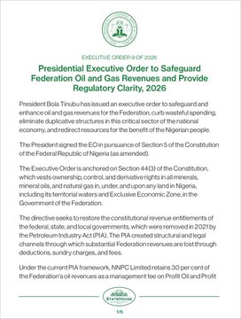 Order 9 of 2026: Presidential Executive Order to Safeguard Federation Oil and Gas Revenues and Provide Regulatory Clarity, 2026 Signed & Gazetted