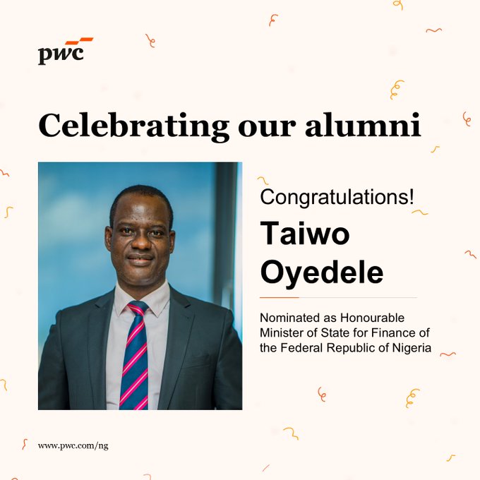 , on his nomination by President Bola Ahmed Tinubu as Honourable Minister of State for Finance of the Federal Republic of Nigeria. We wish him every success in this national assignment.